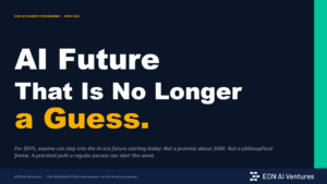 - Verified AI credential: Successful graduates receive the EAFI (EON AI Founder Initiative) credential, a tamper-resistant badge that proves to employers, investors, and customers that you have the fluency and capability to thrive in the AI economy.